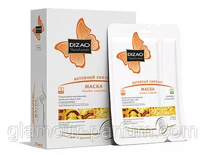 Маска з біологічно активним золотом Dizao "Золота Плацента" створена для догляду за зрілою шкірою обличчя та шиї. Основним активним компонентом є кристали золота, які вступають у реакцію з клітинами шкіри та змушують їх омолоджуватися. Золото, здатне взаємодіяти з хімічними процесами організму, вперше відкрили американські вчені. Кристали мають чітко окреслені ліфтинг-ефекти, саме тому дія маски видно вже після перших застосувань.