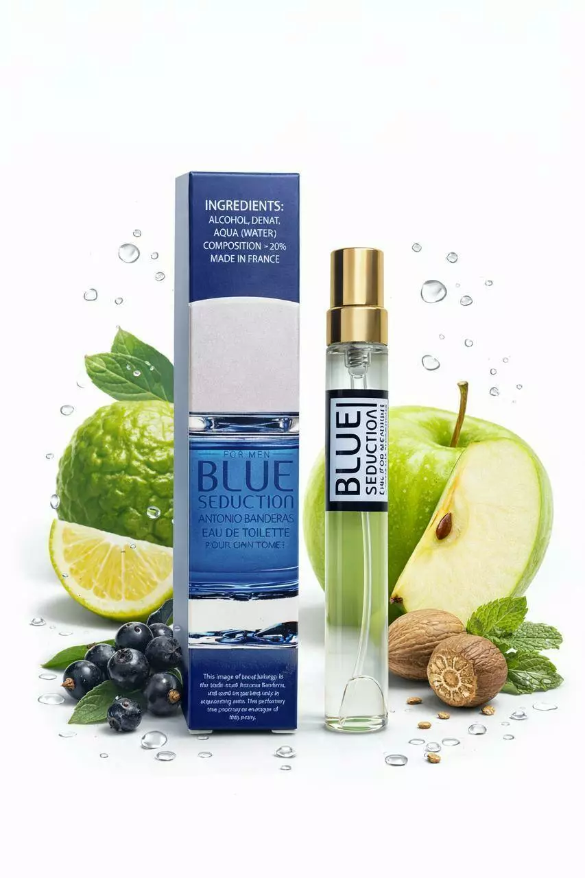Blue Seduction for Men від відомого іспанського виробника ANTONIO BANDERAS відноситься до фруктово-ароматичної групи з східними мотивами. Верхні ноти включають в себе легкий присмак чорної смородини, м'ятну прохолоду і соковиту диню в поєднанні з морською водою. Неймовірна свіжість зеленого яблука з акордами кардамону, благородного мускатного горіха і дині складають ноти серця цієї композиції. Завершує піраміду загадковий бурштин, підбадьорливий капучіно і шлейф амбрового дерева.