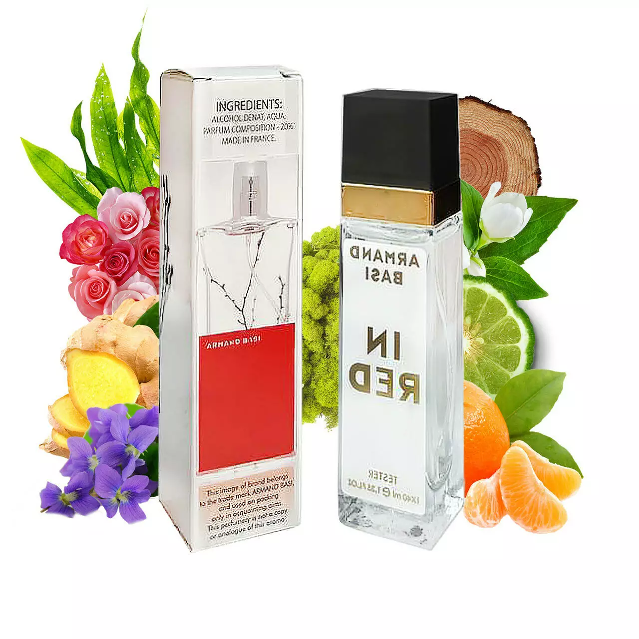 Armand Basi In Red являє собою спокусливу, що збуджує, яскраву композицію, яка зіткана запахами квітів і цитрусових, вишукано поєднуються з чуттєвої силою дерева, щільного вологого моху, екзотичним дотиком амбри. При цьому незвичайна сутність розкривається несподівано і яскраво, наче крила метелика. А є цими крилами чистий томний спокуса і світло, пристрасть і сонце. Вони виблискують і переливаються вражаючими відтінками – від ніжно-рожевого і світло-червоного до темно-пурпурного.