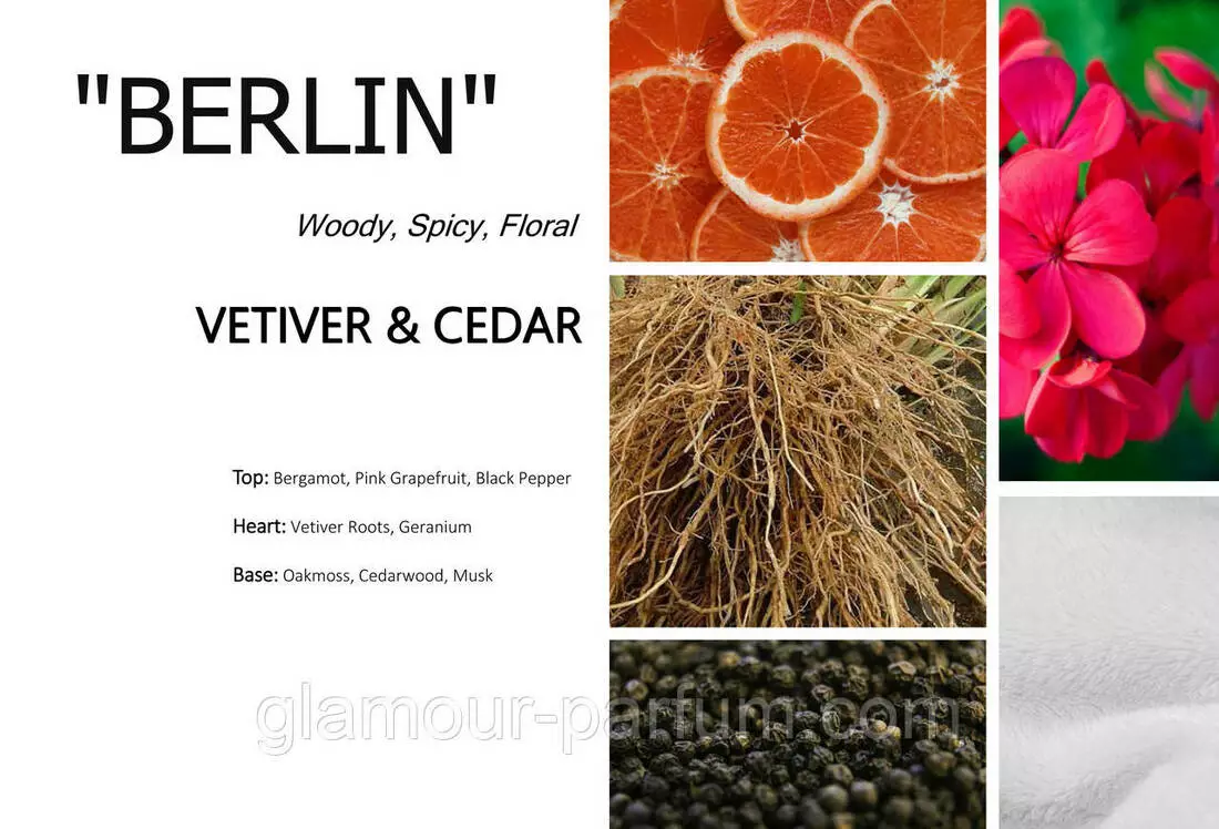 Навіть нетрі тут елегантні, а в будинках досі гріються за допомогою каміна. Це Берлін, і він чарівний у своєму поєднанні суворості і романтизму. Складна емоційна архітектура чудово продубльована в новому аромадиффузоре для дому від Kot'e. Чуттєва, злегка прозора і колючий тріада з чорного перцю, рожевого грейпфрута, бергамота відкриває аромат. Пристрасний, запальний, але консервативний – це стає зрозуміло вже на серединної ноті. Герань і коріння ветівера переносять вас до Бранденбурзьких воріт. Сила нації і духу відображена взаключительном, істинно чоловічий акорді з мускусу і дубового моху. З його допомогою творці ароматичного дифузора для інтер'єру в Україні висловили самобутність цієї ланки «Старої Європи».