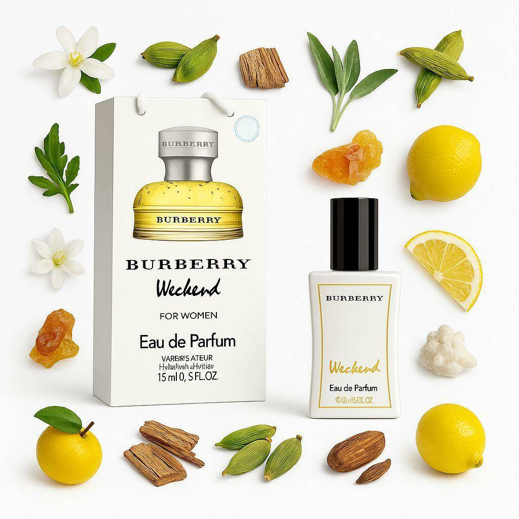 Burberry Weekend це аромат на кожен день, який водночас здатний прикрасити повсякденність соковитими квітами яскравого сонця, ранкового лісу та літнього неба. Його не можна назвати непомітним чи простим, він обов'язково виділить свою власницю з натовпу, але зробить це витончено і за всіма канонами справжнього англійського стилю. Жіночий і м'який, він ніби підкреслює і розкриває природну жіночу елегантність та витонченість. Цей унікальний аромат оформлений у флаконі із матового скла, який виконаний у стилі сучасної скульптури.