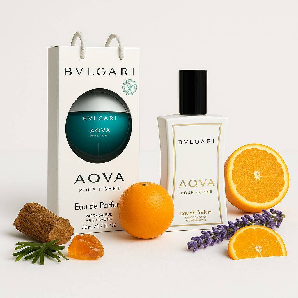 Aqua pour Homme, чудова композиція від Bvlgari, гімн морської стихії, свіжий мікс з морського вітру і запаху цитрусових гаїв. Саме цими відтінками свіжих мандаринових листя – відкривається Aqua pour Homme, за ними в гру вступають ноти морський посідоній, вони переносять уяву в безмежний простір океану. Глибина композиції духів Aqua pour Homme – приваблива стриманість мінеральної амбри і деревних нот.