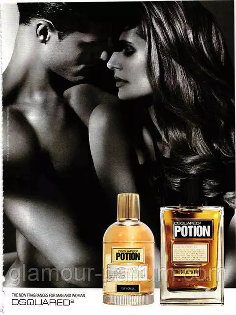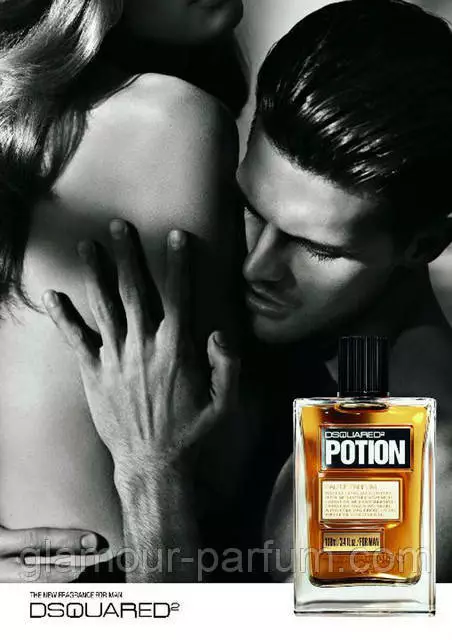 Рецепт приворотного зілля під назвою Dsquared2 Potion досить простий. Він містить кілька листиків червоної м'яти, змішаних із дягелем і чебрецем. Це верхні ноти аромату, що стосується центру, то в ньому виткані аромати кількох пелюсток троянди, чорного перцю, гіркочівки та кориці. Вишуканий сексуальний шлейф складається з кашемірового дерева, пачулів, амбри та мускусу. Усі інгредієнти, зібрані разом і змішані й ідеальної пропорції, виробляють незвичайний привабливий ефект. Не рекомендується чоловікові застосовувати цей аромат як повсякденну: так багато представниць прекрасної статі щодня падатимуть до його ніг, що це може перешкодити в роботі.
