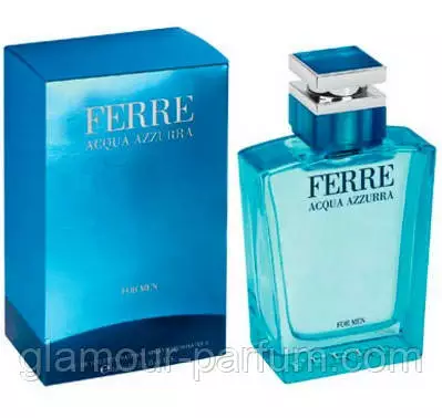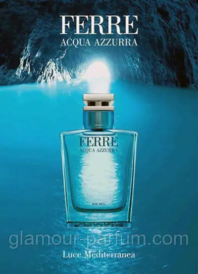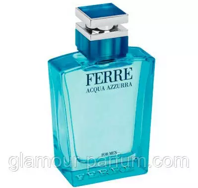 Ferre Acqua Azzurra – чоловічий аромат, що оповідає про подорож у зачаровані місця, де непосидючі промені сонця таємничо поблискують на кришталево чистому дзеркалі морських хвиль. Століттями живуть легенди про підступність пануючих у підводному царстві сирен, заманюють довірливих закоханих в свої мережі, стали основним лейтмотивом композиції. Чоловік з ароматом Acqua Azzurra володіє достатньою силою і відвагою для того, щоб не піддатися спокусі і чинити опір труднощам, які підносить йому життя.
