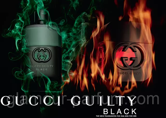 Чоловіча туалетна вода Guilty Black Pour Homme– таємничий, неординарний чоловічий аромат, випущений в 2013 році і увійшла в групу фужерний аромат. Герой Guilty Black Pour Homme – мужній, безстрашний, непередбачуваний і пристрасний, він живе, порушуючи правила і змітаючи всі перешкоди на своєму шляху. Це дуже сильний і яскравий аромат підходить для сучасних чоловіків, упевнених у собі, зухвалих, стильних, успішних. У композиції присутня рідкісний шкіряний відтінок, який додає аромату тваринну сексуальність і магнетизм.