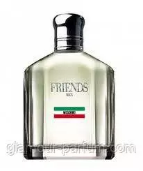 Moschino Friends увібрав у себе атмосферу справжньої чоловічої дружби. Він весь пронизаний духом Італії, де дружба цінується особливо високо. Барвистий цитрусовий аромат несе в собі заряд середземноморської свіжості. Жива та яскрава композиція починається іскристими цитрусовими нотами калабрійського бергамоту, мандарина й апельсина. Квіткове «серце» містить герань і парагвайський петигрен, освітлений середземноморським бризом. «База» побудована на нотах деревини та мускусу. Аромат і паковання становлять особливий союз — особливу дружбу, — унаслідок якої з'явилися ці молоді, натуральні та безпосередні парфуми, присвячені глибокому та щирому почуттю.