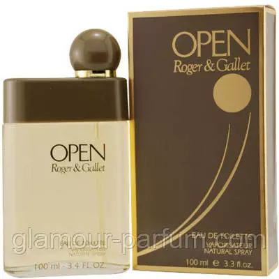 Roger & Gallet Open («Роджер і Френет. Відкритий») – чоловічий фужерний аромат із деревними нотками. Яскравий і мужній, він відбиває впевненість і силу свого володаря. Задоволений життям, що тримає її під контролем, чоловік у стилі Open бере ініціативу у свої руки та не відмовляється від усього нового.