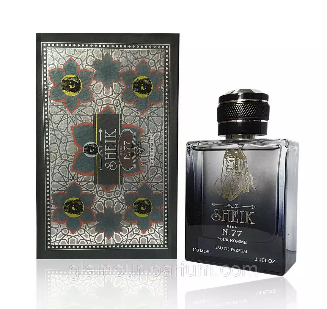 «Al Sheik Rich 77» (Аль Шейк Річ 77) — ніжний, теплий і дуже соковитий аромат. Його внутрішній світ асоціюється з природною чоловічою сексуальністю, яка зводить із розуму всіх жінок на землі. Володар цих парфумів вміє бути рішучим і цілеспрямованим, але в його душі завжди є місце для справжньої любові та пристрасті.