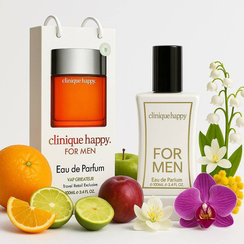 Незвичайні компоненти, використані в парфумерної композиції – екзотичний фрукт каламанзи, юзу, мандарин і терпкий кафрський лайм, створили відчуття свіжості моря, яке відчуваєш, вдихаючи аромат. Чарівні запахи світлих деревних порід, таких як середземноморський кипарис, кедр і гуайяк, вдало вносять рівновагу в рослинні ноти. І це надає особливу ціну і шарм парфуму Clinique Happy for Men.