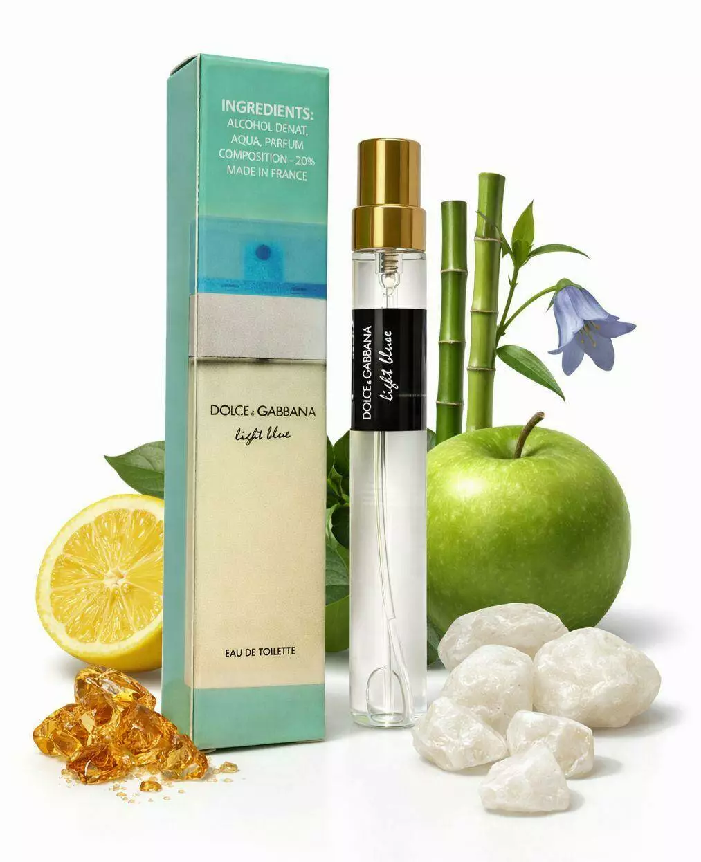 Композиція Dolce&Gabbana Light Blue побудована на самих чистих ароматах. Тон всій мелодії цього парфуму задають бадьорі ноти лимона і легка кислота зеленого яблука, доповнені ледь відчутним дзвіночком. Перші енергійні переливи змінюються більш м'якими нотами жасмину і білої троянди, розведеними свіжістю бамбука. У завершальній серпанку цього чистого парфуму чується палке дихання амбри, оксамитового мускусу і благородного кедра, що надає загальної композиції аромату неповторну загадковість. Саме завдяки легкій вуалі таємниці, будь-яка жінка, яка вибрала цей парфум, може бути впевнена в увазі до себе протилежної статі.