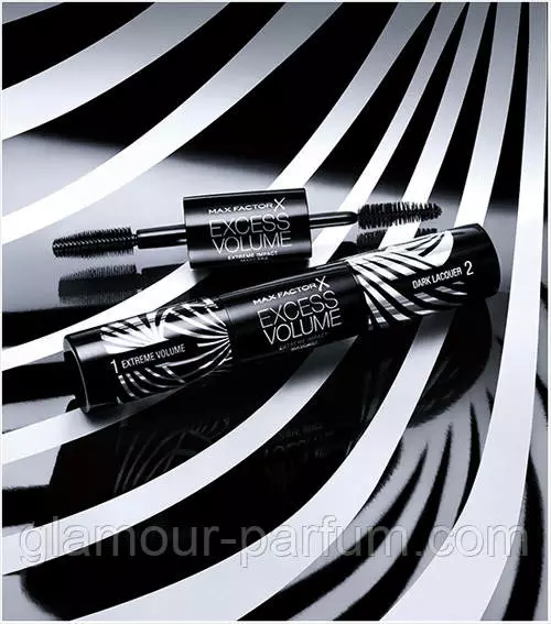 Такий грандіозний ефект дарує поєднання двох унікальних формул: екстремальний об'єм плюс чорний лак, об'єднаних в одному косметичному засобі. Для зручності нанесення є дві спеціальні щіточки. Однією з них наноситься засіб для надання віям довжини, об'єму та густоти. Другою щіточкою наноситься ультрачорний лак. Туш Max Factor Excess Volume легко видаляється засобом на олійній основі.