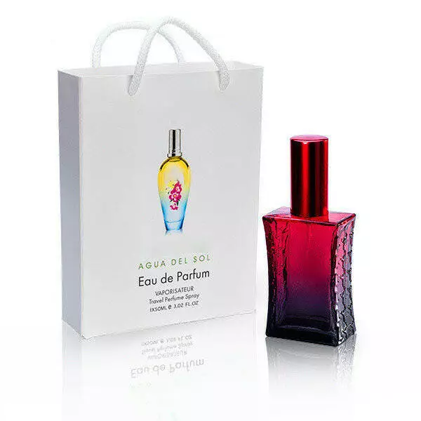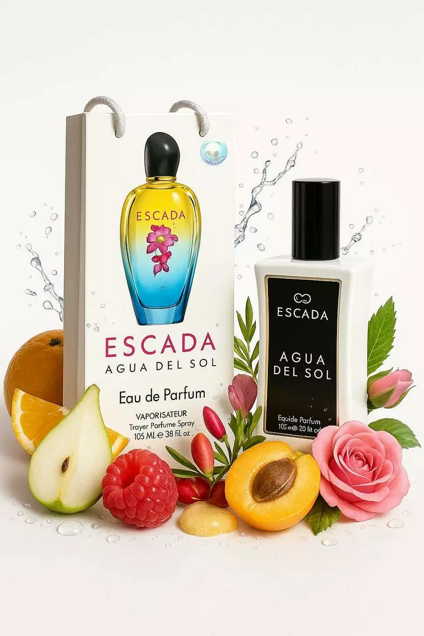 Варіації аромату дарують радість і насолоду. Пахощі солодкої малини і стиглої груші, соковитість мандарин, солодкість морозива і сорбету, життєрадісна енергія цитрусів і все це витончено приправлено пікантною гостротою рожевого перцю. Саме так зустрінуть вас початкові акорди річної композиції Agua del Sol. А що ж скаже серце аромату? Воно розкриє палкі обійми. Тут стиглі абрикоси, обласкані сонячним теплом, посипаний пелюстками королівських троянд. М'яка теплота білого мускусу, чуттєва насолода бобів тонка і витончені сандалові акорди завершують чудову композицію Agua del Sol.