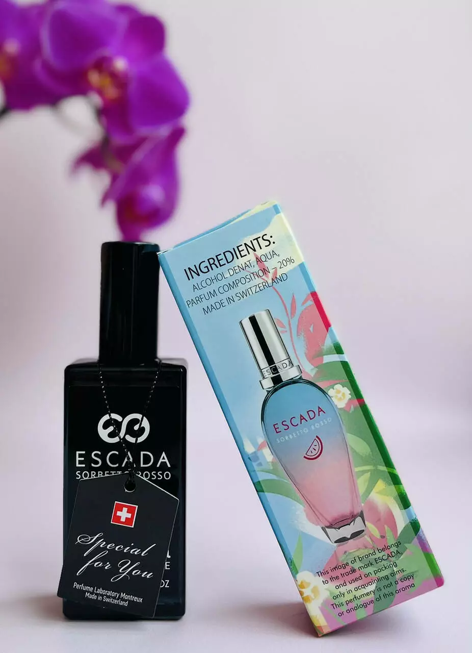 Тут сплетені дійсно незвичайні, здавалося б, непоєднувані ноти, що в результаті дало просто запаморочливий у своїй ефект несподіванки. Представниці прекрасної статі відзначають морську легкість запаху з його цікавими, фужерными переливами і цитрусами або одягають в послевкусии. Верхівка парфумерної композиції складається з привабливих, фруктових акордів стиглої груші, який дивовижно відтіняється апельсиново-лимонної серпанком. Екзотичний калон плавно переходить в серці трикутника, де розташувався запаморочливий тіарі. Саме ризиковане поєднання еліксиру - стиглий кавун і морська сіль, характеризується напрочуд вдалим, смачним результатом. Освіжаюча вода розбавляє опьяняющую картину. В основі піраміди - класична комбінація спокусливого мускусу і привабливою амбри, яка створює м'яку, але впізнавану серпанок шлейфу. Нудотно-солодке праліне розставляє остаточні акценти в карколомному творі мистецтва. Аромат Escada Sorbetto Rosso неодмінно сподобається яскравим, ризиковим, непередбачуваним представницям прекрасної статі, які люблять пробувати щось нове і ніколи не відмовляють собі в миттєвих задоволеннях.
