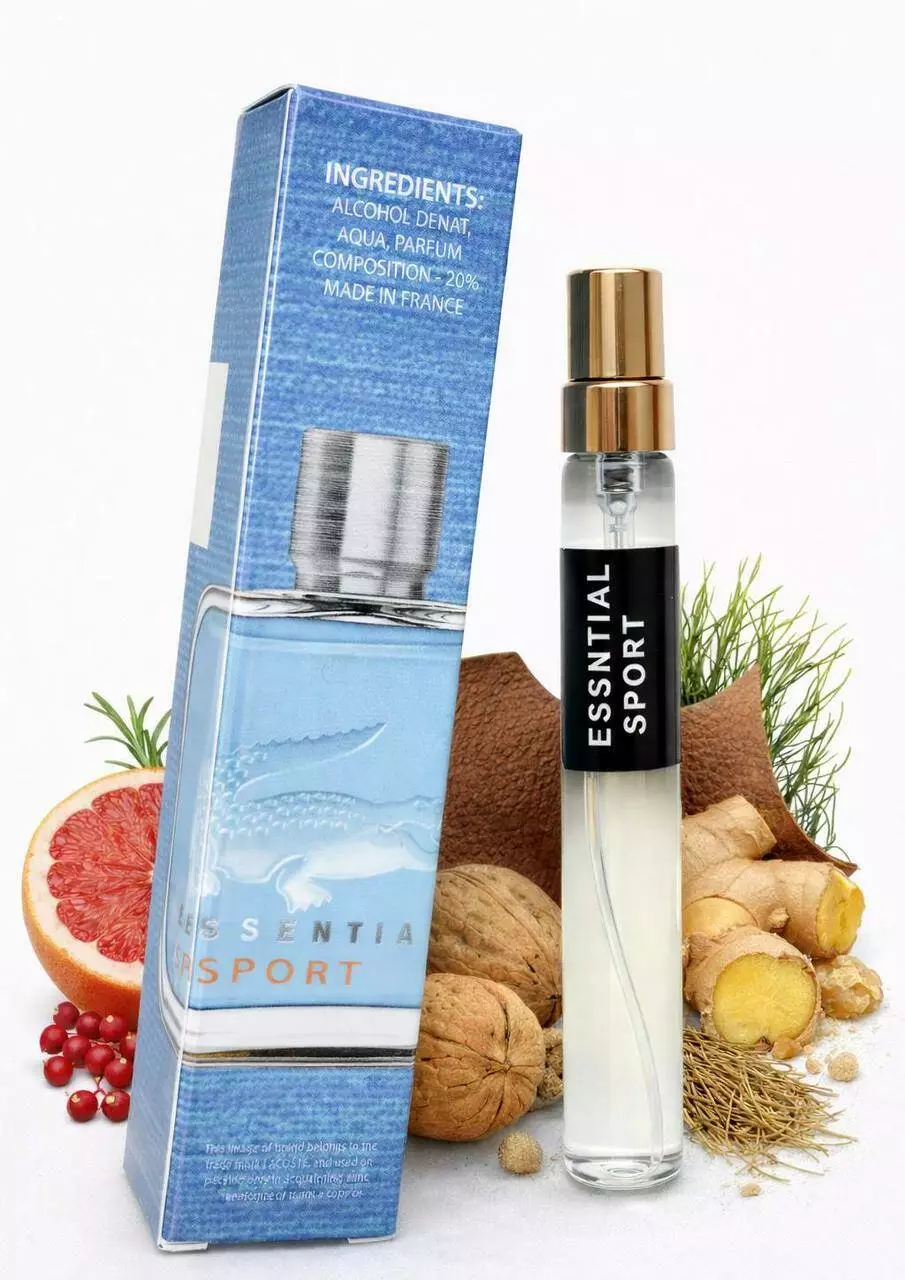 Essential Sport Pour Homme — це енергійний, свіжий і динамічний аромат, який відкривається бадьорими цитрусовими нотами грейпфрута та пряного імбиру, поступово розкриваючись ароматним серцем із розмарину й мускатного горіха, а в базі звучить сухими деревними акордами ветиверу та кедра з легким шкіряним відтінком, створюючи чистий, спортивний і освіжаючий шлейф, що ідеально підходить для активного способу життя, щоденного використання та теплої пори року.