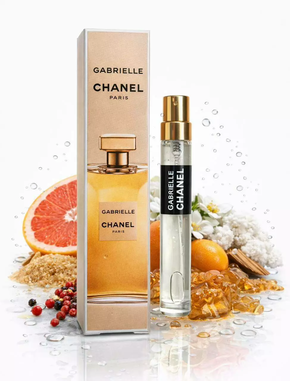 Торкнувшись шкіри, Gabrielle розкривається сонячними бризками цитрусових — насолодою мандарина і терпкістю грейпфрута в обрамленні ноти стиглої смородини. Серце парфуму розпускається пишним букетом білих квітів, у якому важкий іланг-іланг відтінюється ніжним апельсиновим кольором і чуттєвим жасмином, а розкішна тубероза задає тон всієї композиції. Поступово пом'якшуючи, аромат є базовою нотою — тандем мускусу та сандалу.