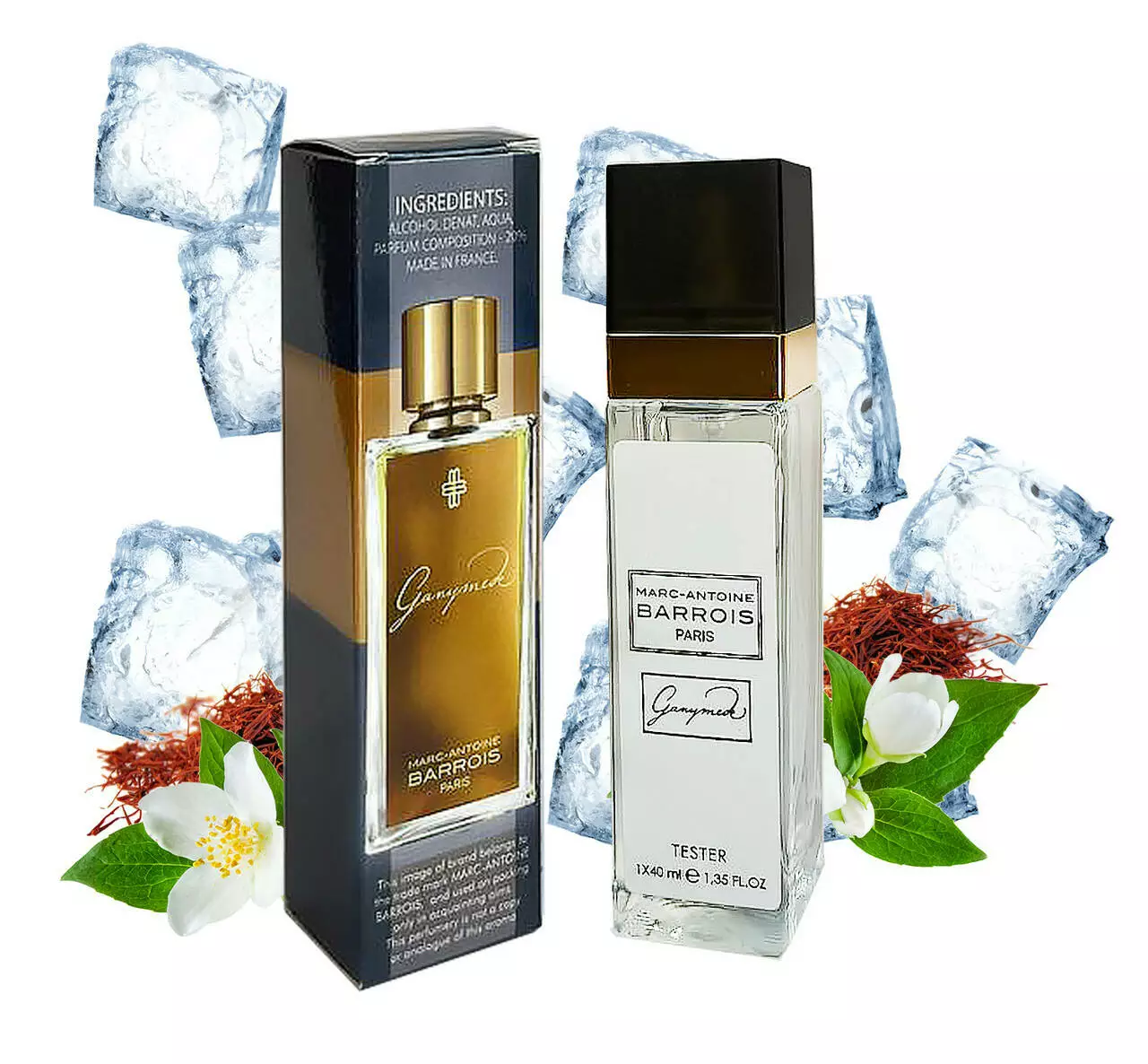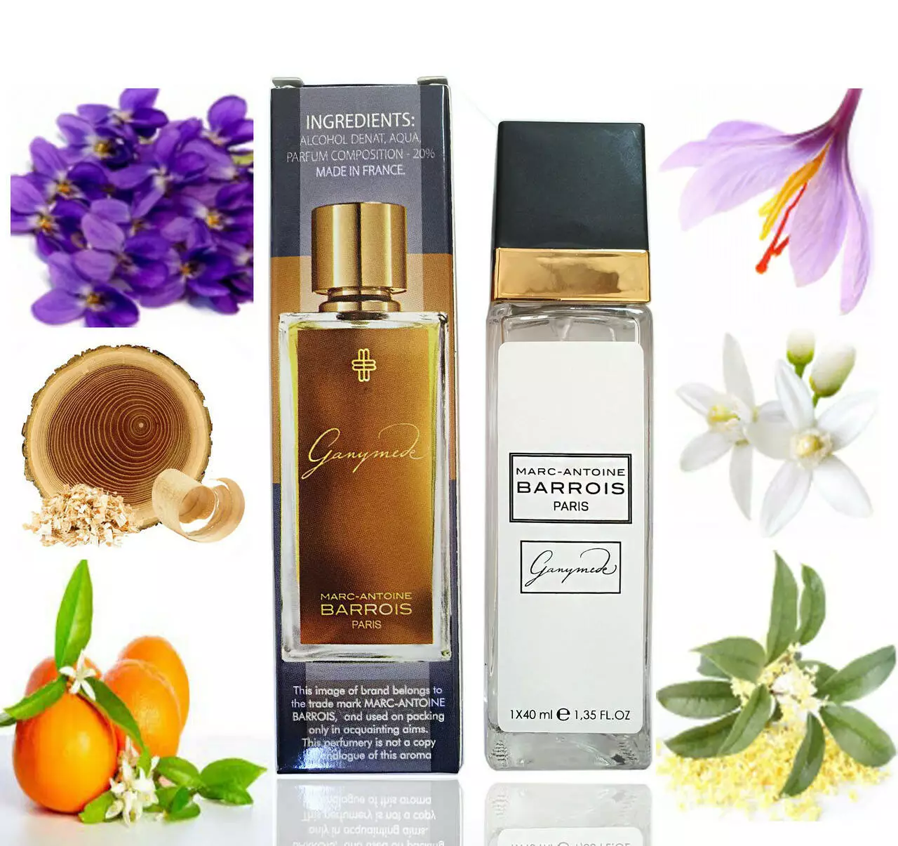 Створюючи елегантну нетривіальну гармонію навколо квартету мандарина, фіалки, безсмертника та замші, Марк-Антуан Барруа-кутюр'є та Квентін Біш – парфумер мріяли про планету Ганімед. Скелястий супутник Юпітера, відкритий у 1610 році Галілеєм, сяючий, покритий льодами та пустельми, він отримав свою назву від грецької міфології: молодий чоловік, Ганімед, був викрадений богами, які були настільки зачаровані його красою, що дарували йому безсмертя.