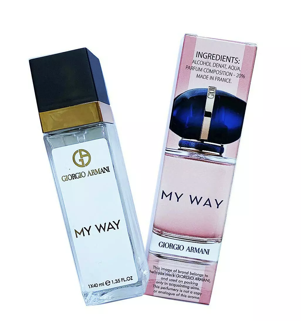 Пишний букет складений з нескінченної кількості бутонів ніжною туберози і африканського флердоранжу, наповнили картину своєю неперевершеною природного солодкістю. Цитрусові відтінки бергамоту вишукано поєднуються з серцевою ноткою медового жасмину. У шлейфі Giorgio Armani My Way переважають гурманські мотиви мадагаскарської ванілі, деревні ноти білого кедра і розкіш білого мускусу.