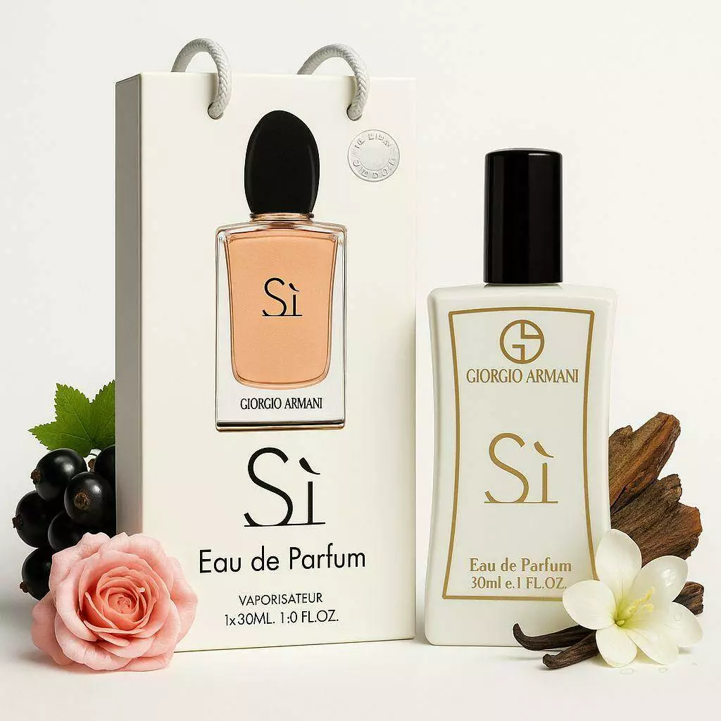 Героїня цього аромату – надзвичайно жіночна, спокійна і відважно приймає доленосні рішення. Giorgio Armani Si був заявлений як шипровий, але в дійсності представляє собою композицію східно-деревного характеру. Він насичений, яскравий, і одночасно м'який і елегантний. Він невагомо лягає на шкіру і прекрасно доповнює в ній натуральні аромати.