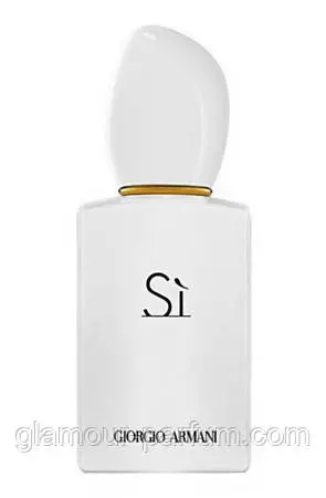 Giorgio Armani Si White Limited Edition — шипрово-фруктовий аромат для жінок, лімітоване видання 2014 року. Легша та повітряна інтерпретація популярного шипрового аромату для жінок Giorgio Armani Si 2013 року, невагома, але відчутна абсолютна відмінність насиченого та інтенсивного Giorgio Armani Si Intense. Композиція являє собою ароматний коктейль із відтінків троянди та білої фрезії, чорносмородинового нектару та пачулів, солодкої ванілі, сексуальних цінних порід світлого дерева та чуттєвого амброксану.
