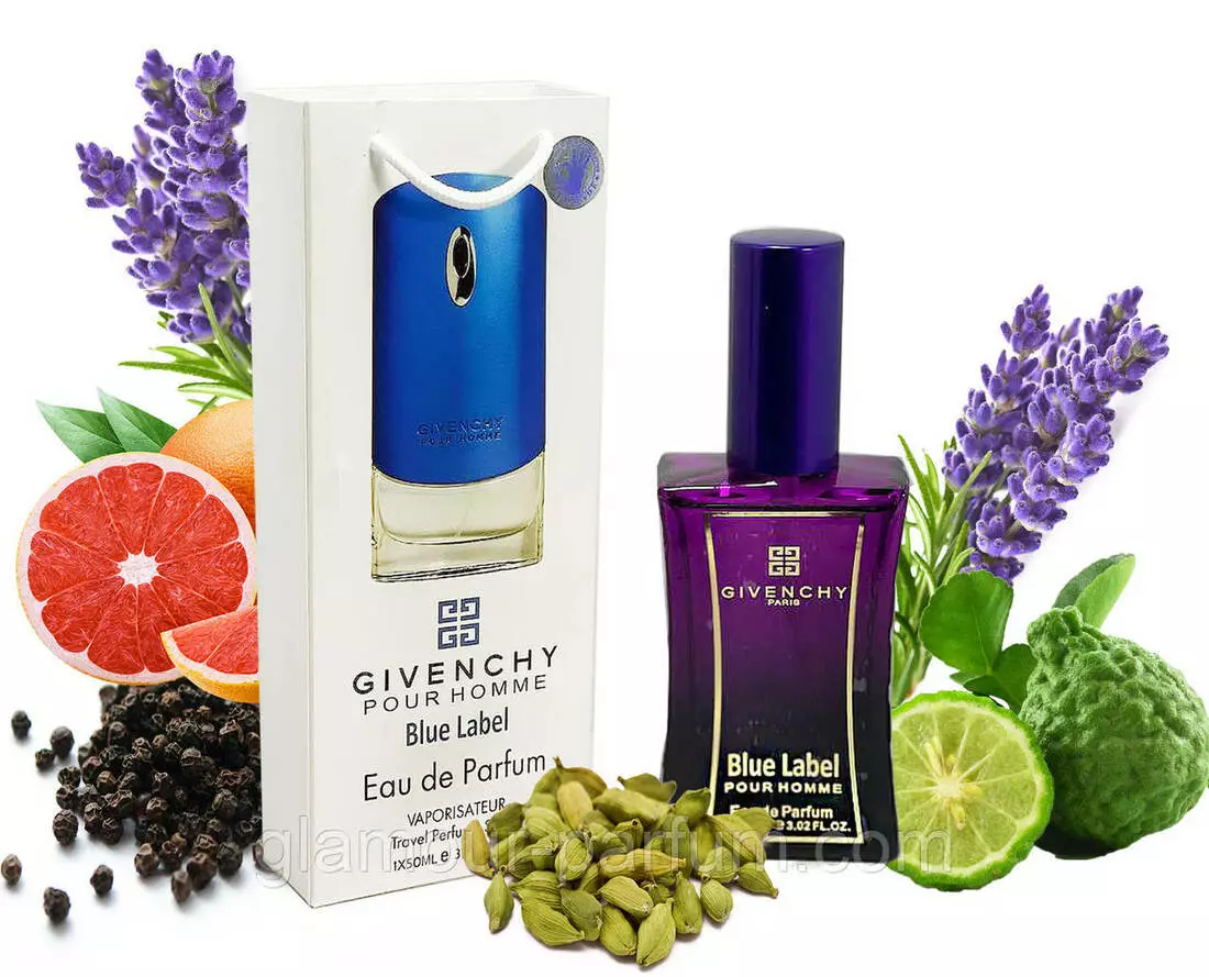 Blue Label — це коктейль, що дарує енергію зі свіжих цитрусових із початковими повітряними та водними нотами. Цікаві прянощі та мужня деревина приносять солодкі та затишні півтони. Флакон аромату за формою аналогічний класичному Givenchy, але тепер він забарвлений у блакитний металік.
