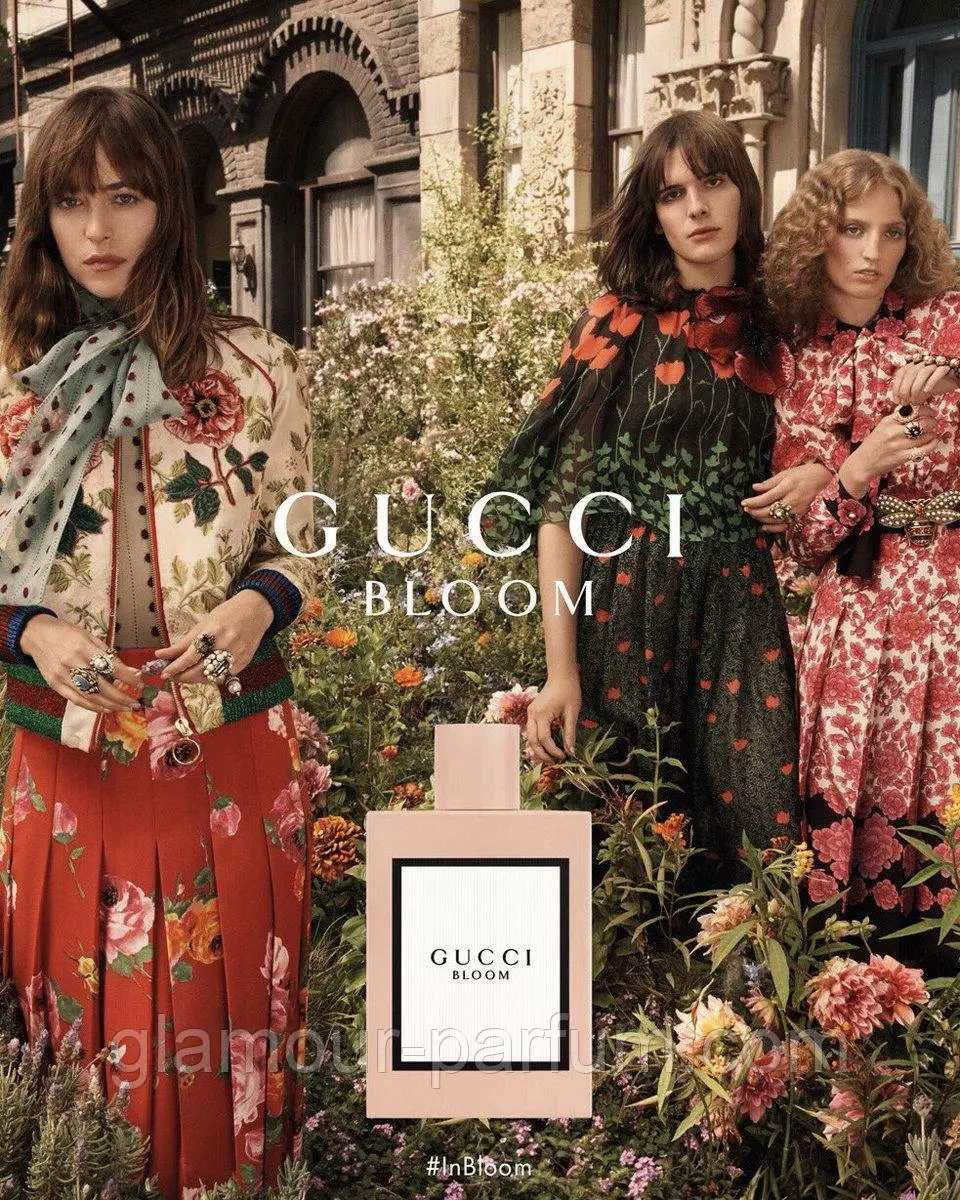Жіночний, ніжний, романтичний і запаморочливий аромат Gucci Bloom чудово підійде для використання у світлий час доби найбільш привабливими і спокусливими представницями прекрасної статі. Він легко зможе завершити образ неперевершеною, карколомної леді, яка любить перебувати в центрі уваги і насолоджуватися захопленими поглядами оточуючих. Першими на гарячій шкірі розкриваються пахучі, неземні акорди жасмину самбак. У серце парфумерної композиції безроздільно панує запашна, екзотична тубероза зі своєю елегантністю і витонченістю. Завершальне слово залишається за сласним, чарівним коренем ірису, який додає аромату особливу легкість і напівпрозору серпанок. Якщо ви хочете здивувати представників протилежної статі своїм бездоганним чином, обов'язково доповніть його шикарним парфумом Гуччі Блум.