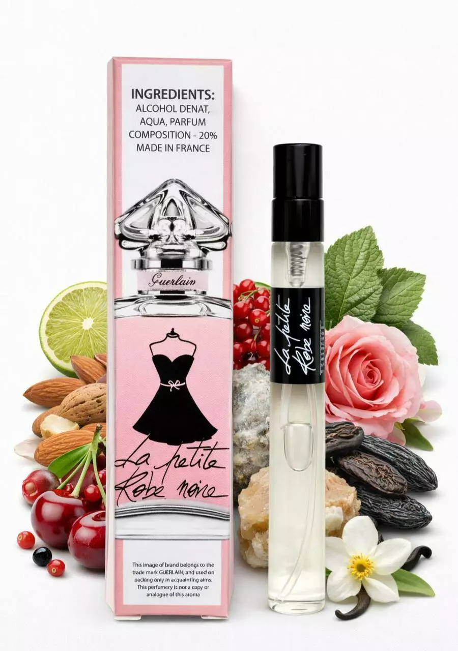 La Petite Robe Noire — це аромат паризької елегантності та жіночного шарму. Він розкривається соковитою вишнею з мигдальною солодкістю, створюючи грайливий настрій. Звучання яскраве, але водночас вишукане. У серці композиції квіткові акорди поєднуються з чайно-лакричними нюансами, додаючи глибини. Аромат солодкий, але не нав’язливий. Тепла ванільна база огортає та залишає чуттєвий шлейф. La Petite Robe Noire звучить жіночно та елегантно. Це аромат упевненості та стилю. Ідеальний вибір для вечора й особливих моментів.