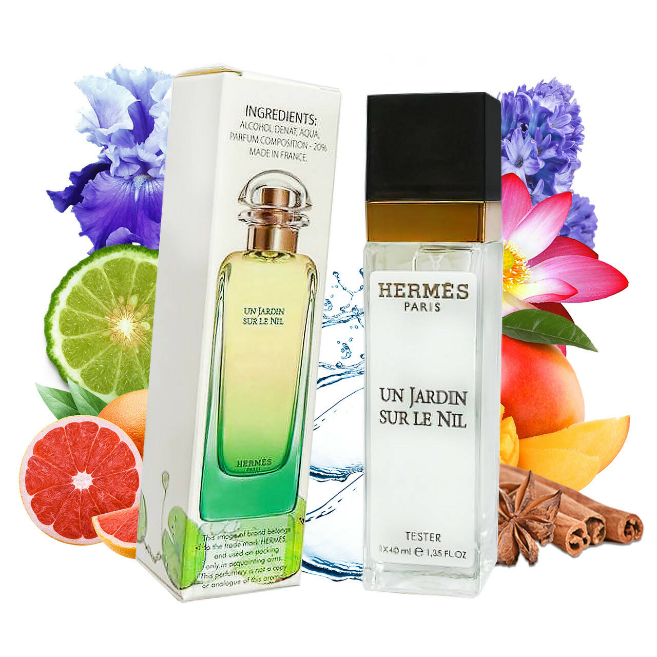 Туалетна вода Hermes Un Jardin Sur Le Nil входить в серію ароматів Un Jardin, присвячених різним садах світу. Надихнувшись красою узбережжя річки Ніл і неповторною контрастністю Африки, головний парфумер торгового дому Hermes Жан-Клод Еллен створив аромат Hermes Un Jardin Sur Le Nil. Він іскристий і освіжаючий, кружляє голову своїм позитивним настроєм та оптимізмом. Краса річковий природи чарує своєю дикістю і жагою до життя, а джерело вічного оновлення — вода — приносить часточку спокою і свіжості в життєву суєту. Аромат сподобається як чоловікам, так і жінкам, оскільки представляє категорію унісекс.
