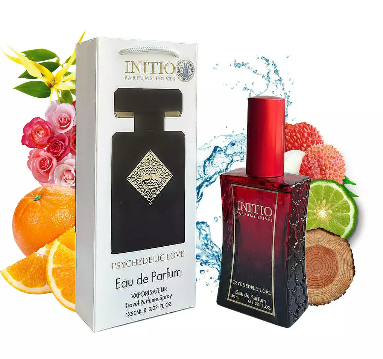 Аромат Initio Psychedelic Love заявлений як універсальний аромат, який добре сяде на чоловічу, і жіночу шкіру. Аромат тішить своєю унікальністю, тож шанувальники парфумів навряд чи зможуть порівняти його з іншими композиціями та знайти спільні риси. Унікальність аромату повідомляє використання молекули гедіону, який вважається безвідмовним афродизіаком. Такий аромат стане ловушкою для протилежної статі, а отже, власники парфумів не залишаться непомітними в будь-яких умовах. Аромат неймовірно стійкий і відчувається впродовж 10-12 годин. Шлейф дуже помірний, м'який і делікатний, огорне ніжними нотками та не заважатиме ні своїм власникам, ні оточенню. Перше звучання аромату Initio Psychedelic Love розкривається солодкувато-квітковими дурманними нотами іланг-ілангу, які підкреслюють свіжий сплеск бергамоту. Серце композиції розкривається оксамитовою розкішшю болгарської троянди, карамельно — марципановими нотками геліотропа та молекулою гедіону. Шлейф зачарує красою мирри та строгими, але елегантними сандаловими акордами.