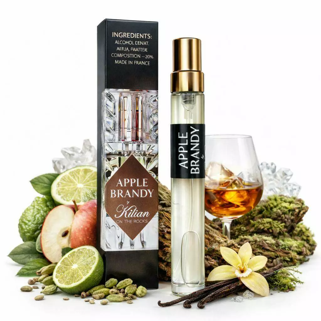Kilian Apple Brandy — це насичений, теплий та елегантний аромат із виразним характером. Він натхненний атмосферою затишного нью-йоркського бару та передає відчуття яблучного бренді з льодом. На старті аромат розкривається соковитим яблуком із легкою пряною свіжістю. З часом композиція стає глибшою й теплішою, проявляючи алкогольні та ванільні відтінки. Серце звучить м’яко, солодкувато й огортаюче, створюючи ефект благородного тепла. У базі аромат набуває деревної глибини та стійкості. Він звучить розкішно, впевнено та стильно. Ідеально підходить для холодної пори року та вечірніх виходів.