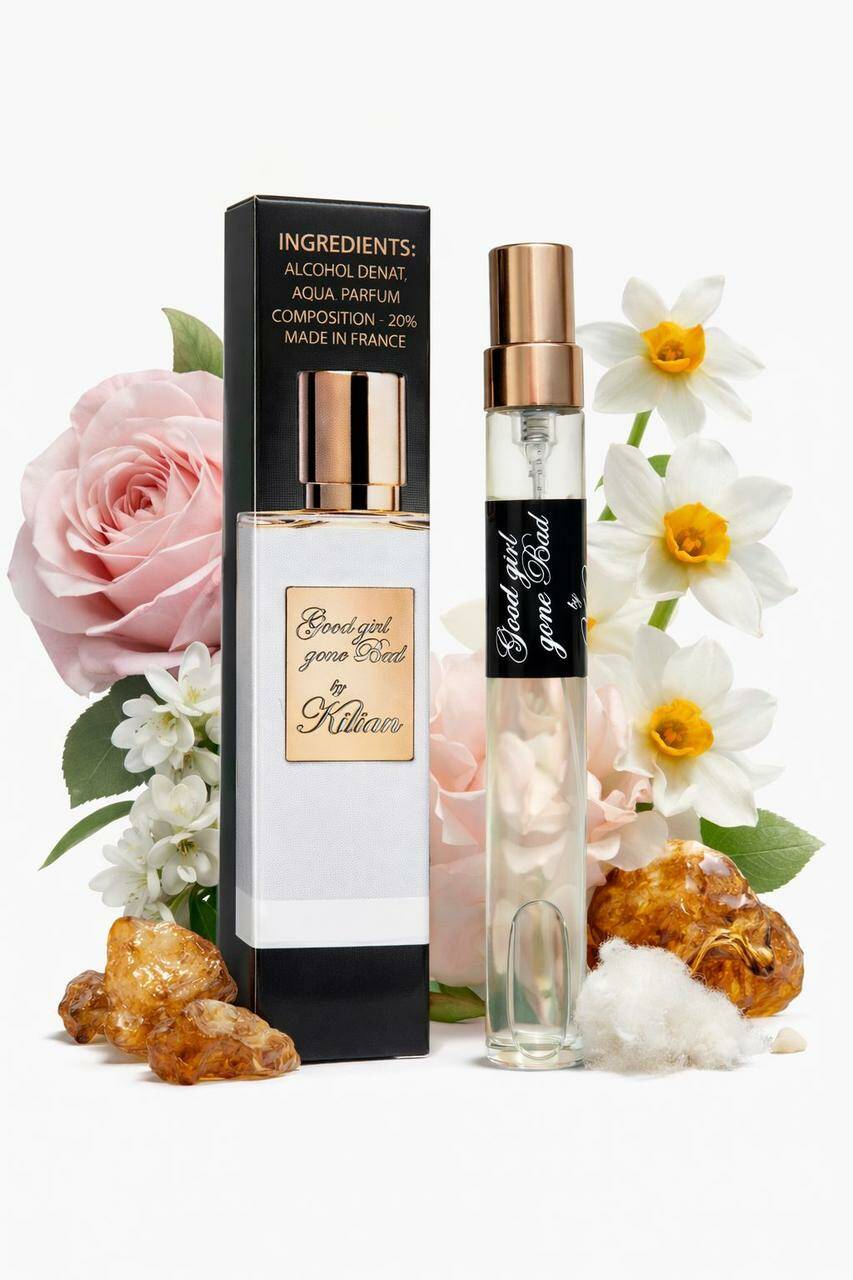 Елітний нішевий парфум нагадає про пахощі найбільш яскравих і красивих квітів – туберози, троянди, жасмину. Аура ніжних акордів жовтого нарциса і жасмину додадуть вашому образу витонченості і граціозності. Ніжні, солодкі ноти травневої троянди і османтуса надають парфумованій воді особливої родзинки і шарму. Завершальні амброві ноти з легкою терпкістю білого кедра звучать дуже вишукано, чудово, розкриваючи квіткову композицію. Пориньте у світ розкішних квітів і східної млості з променистим ароматом Kilian Good Girl Gone Bad!