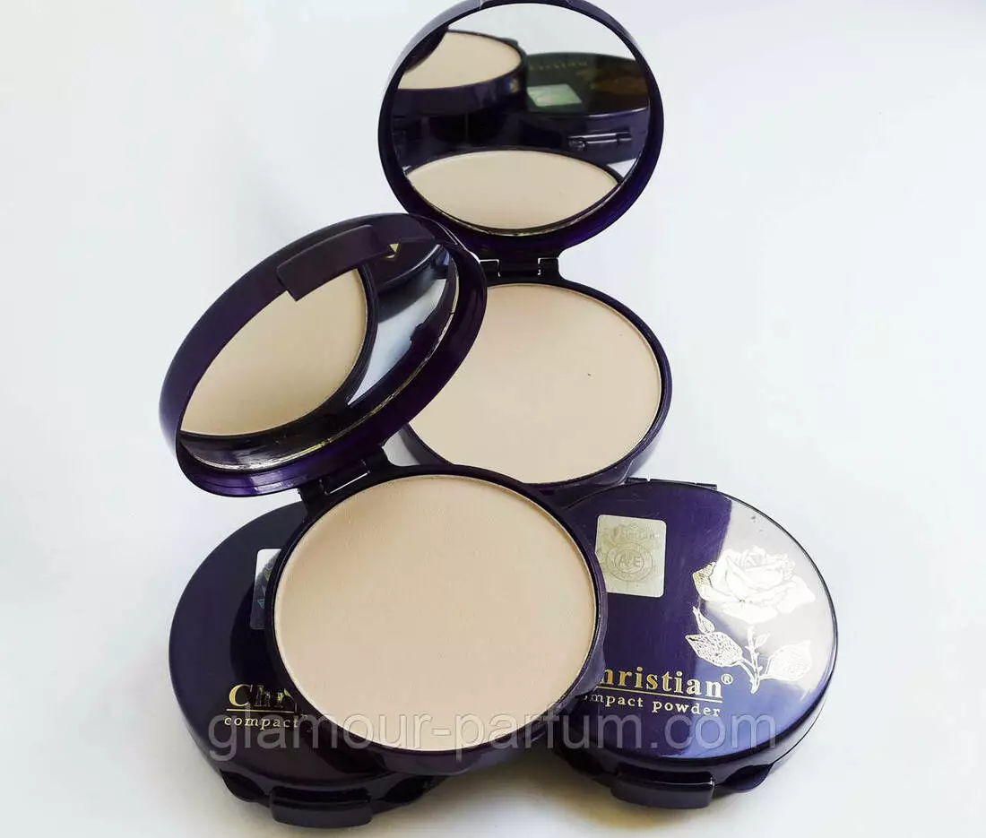 Пудра Compact Powder Cristian призначена для всіх типів шкіри. У комплекті з пудрою йде пухівка, яка передбачає тільки сухе нанесення, але склад пудри створений так, що можна пудру носити та вологим способом, за допомогою спонжа.