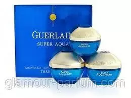 Лінія кремів Super Aqua від Guerlain розроблена спеціально для довгого та інтенсивного зволоження шкіри на клітинному рівні. Фахівцям лабораторії Guerlain вдалося розробити унікальну формулу, що дає змогу волозі не випаровуватися й запобігати шкідливому впливу довкілля. Комплекс створений на основі життєвих клітин піщаної троянди виконує функцію захисного щита, зміцнює герметичність епідермісу, зміцнює антирадікальні пособності клітин, бореться зі старінням. Шкіра стає помітно молодою, гладкою та сяйливою здоров'ям.