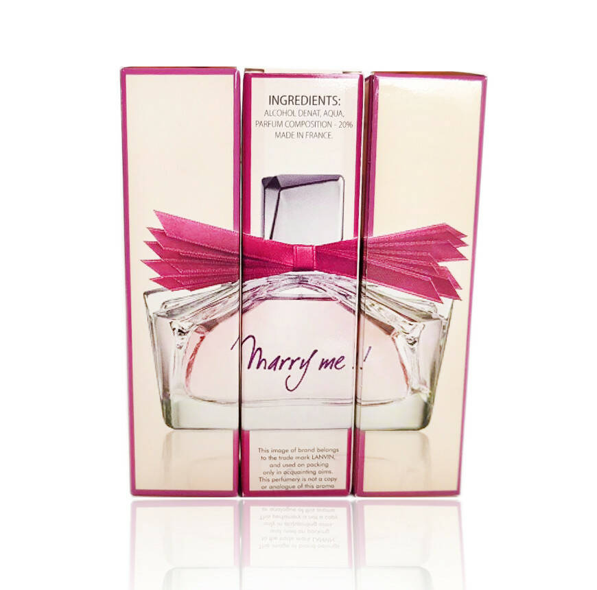 Lanvin Marry Me – це чаруюча історія про молоду даму, чиє серце пронизала стріла Купідона. Про дівчину, що пройшла десятки випробувань заради єдиної і справжньої любові. Романтичне «твір» написано в м'яких тонах. У ньому переважають освіжаючі пахощів стиглих фруктів, прикрашені п'янкими квітковими нарисами.