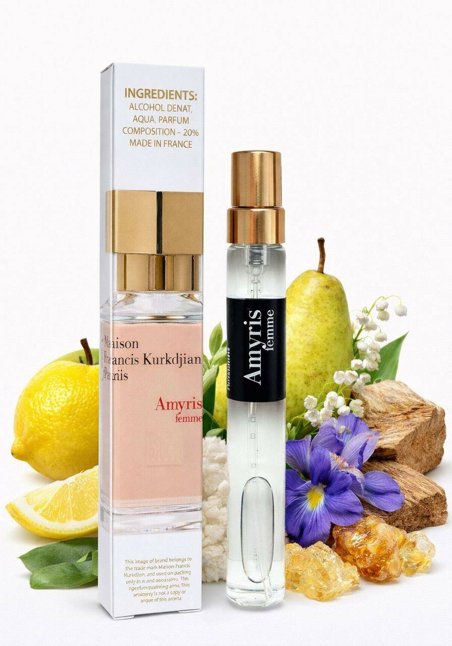 Amyris Femme — це аромат світлої елегантності та жіночної витонченості. Він розкривається м’якими фруктово-цитрусовими акордами, даруючи відчуття чистоти. Звучання легке, але дуже благородне. У серці композиції амірис додає кремової деревності, а ірис — пудрової ніжності. Аромат гармонійний і збалансований. Тепла мускусно-деревна база підкреслює м’якість звучання. Amyris Femme звучить делікатно й ненав’язливо. Чудово підходить для щоденного використання та офісу. Аромат для тих, хто цінує стриману розкіш і комфорт.