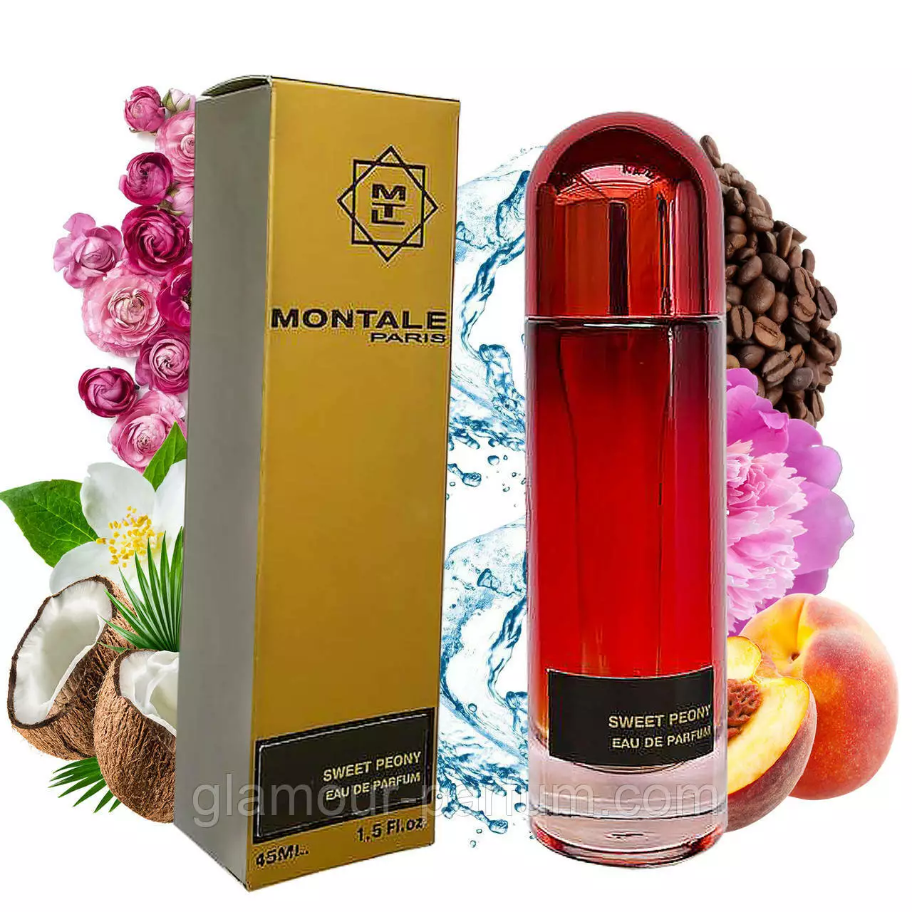Montale Sweet Peony є ніжною квітково-фруктової парфумованої водою з терпкими нотами сандалу і ароматної кави. Справжнім гурманам і цінителям унікальних ароматів напевно припаде до душі цей оригінальний парфум, який відрізняється своєю самобутністю. П'єр Монталь створив свій шедевр у 2017 році і з цього моменту Sweet Peony став улюбленцем багатьох жінок.