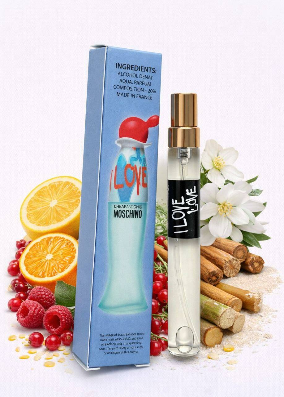 Це свіжий та яскравий аромат для жінок, який випромінює легкість і радість. Він відкривається вибухом цитрусових нот грейпфрута, апельсина і лимону разом із солодкою червоною смородиною, створюючи живий початок. У серці композиції звучать ніжні квіткові акорди конвалії і чайної троянди, підкреслені очеретом, корицею і солодким акцентом цукрової тростини. Базові ноти мускусу, кедра і танаке-дерева дарують аромату теплий, м’який та приємний шлейф, що підсилює почуття комфорту і чарівності. Цей аромат ідеально підходить для весни і літа, для денних виходів або моментів, коли хочеться свіжості, легкості і позитивної енергії. Moschino Cheap & Chic I Love Love — це аромат радості, веселощів та безтурботної молодості.
