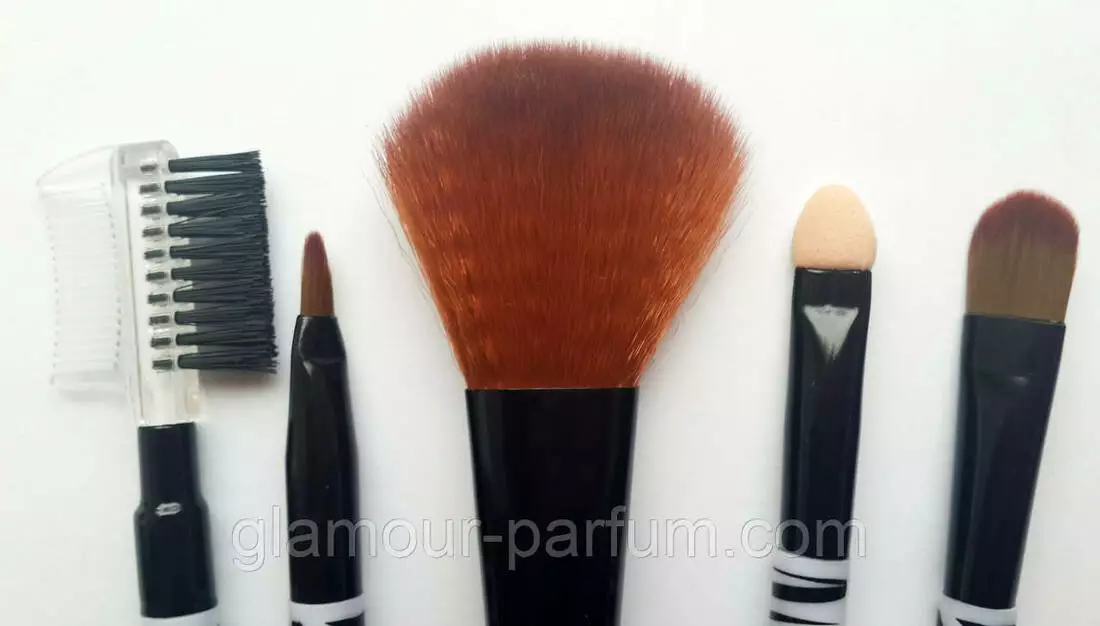 - Комплектація пензликами: Пензель для помади|Кисть для тіней|Аплікатор|Щіточки для брів і вій|Кисть для пудри