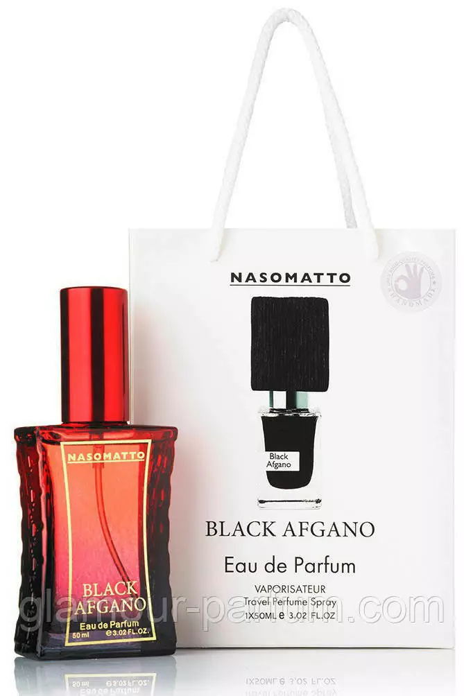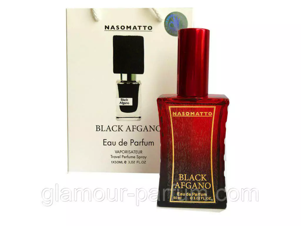Nasomatto Black Afgano покликаний надавати образу своїх власників владності, пристрасності, будоражащей сили і чаклунського тяжіння завдяки дивному співзвучністю чуттєвих і відвертих компонентів неперевершеною парфумерної композиції. Він немов переносить володаря в далеку спекотну пустелю, де піщані дюни нагадують про нещодавню бурях і нещадно палить сонце. І ось довгоочікуваний оазис, який одурманює і п'янить – Black Afgano. Розбурхує і терпкий, він дарує відчуття безтурботного щастя.