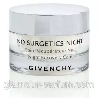 Нічний крем для обличчя Givenchy No Surgetics (Живанці Ноу Супростик) є справжнім джерелом енергії для шкіри, він інтенсивно бере участь у її відновленні, прискорюючи клітинне оновлення в нічний період. Завдяки відновному активному інгредієнту Desoxine Bio, крем допомагає шкірі "дихати" і сприяє виведенню токсинів, що накопичилися з плином дня, підтримує ідеальне співвідношення вологи та жиру в шкірі. Уже наступного ранку шкіра має вигляд посвіжої та яскравої, а зморшки помітно зменшуються.