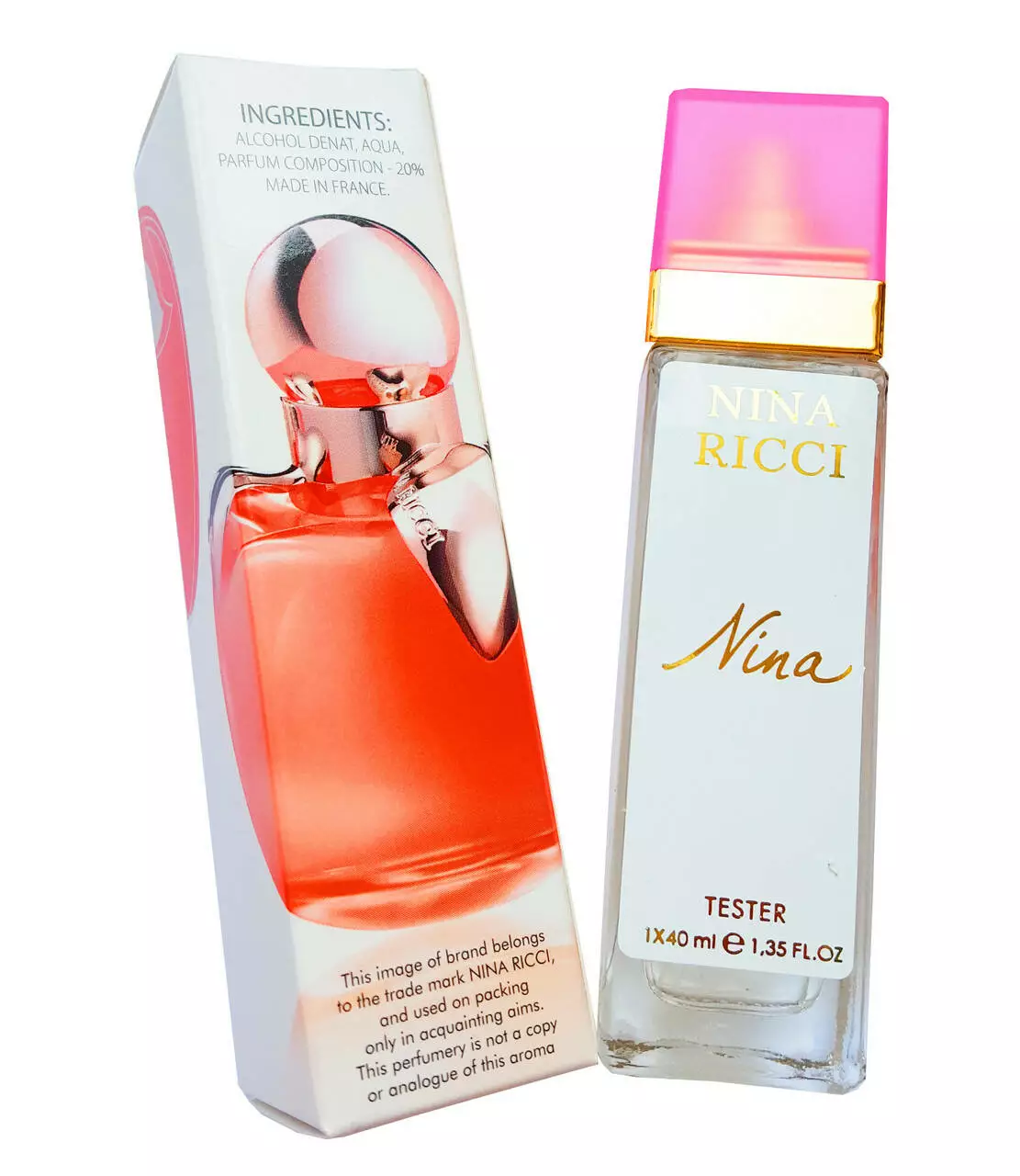 Чуттєвий і дражливий, свіжий і легкий, привабливий і жіночний парфум Nina покликаний запалити іскру в серцях своїх власниць – молодих і романтичних фантазерок, пристрасних спокусниць, чарівних мечтательниц. Він освіжає калабрийским лимоном, напоєним пахощами півонії, праліне, яблука, білого мускусу і деревини, додаючи в казковий і чарівний світ ще більше оптимізму і радості. Милий еліксир помістили в розкішний флакон, який стилізовано під малинове яблуко з ореолом червоного кольору.