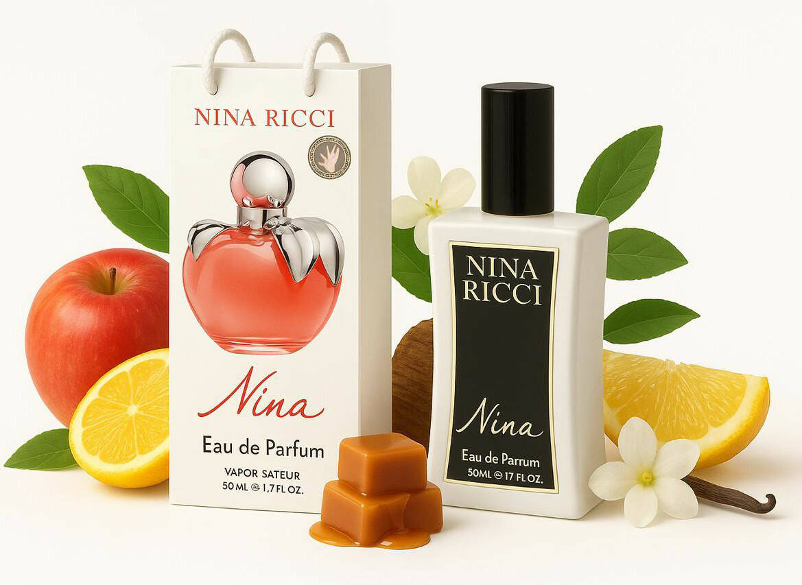 Брендом Ninа Riсci запропонована чергова чарівна казка, сюжет якої дивно сучасний і водночас сповнений справжньої класики. Йдеться про духи Ninа, адресованих непередбачуваним і романтичним дівчатам, виконаним молодий грації і пориву. Пропонована популярним брендом парфумерія адресована тим, хто щиро любить світ молодих фантазій. З магією цього парфуму реальністю здатні стати навіть найсміливіші і несподівані мрії. Його власницю огортає явно відчувається аура спокуси, юного шарму і справжньої жіночності. Початкові ноти композиції створені з тонів калабрійського лимона і лайма. Пелюстки розкішного півонії, луноцвет, червоне яблуко і ваніль формують дивовижне по своєму звучанню серце композиції. Деревина яблуні, білий кедр і бавовняний мускус створили базу композиції.
