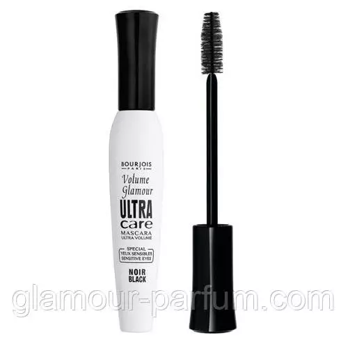 Об'ємна туш Bourjois Volume Glamour Ultra Care м'яко доглядає за вії, живлячи та захищаючи їх від негативних чинників. Гіпоалергенна формула туші спеціально розроблена для чутливої шкіри очей. Формула збагачена оліями бавовни та мигдалю, а також вітаміном Е й Omega 6, які мають прекрасні відновлювальні, пом'якшувальні та поживні властивості.