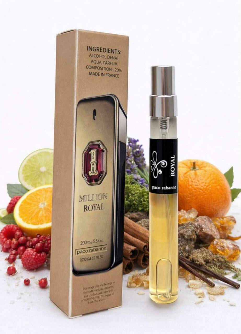 Paco Rabanne 1 Million Royal — це насичений, харизматичний і королівський аромат, який відкривається яскравими та пряними нотами бергамоту, рожевого перцю й мандарину, поступово розкриваючись у тепле серце з акцентами кориці та прянощів, а в базі звучить благородна лаванда, глибока амбра та землистий дубовий мох, створюючи потужний, стійкий і запам’ятовуючий шлейф, що ідеально підходить для вечірнього часу, холодної пори року та впевнених чоловіків, які прагнуть підкреслити свій статус, стиль і індивідуальність.