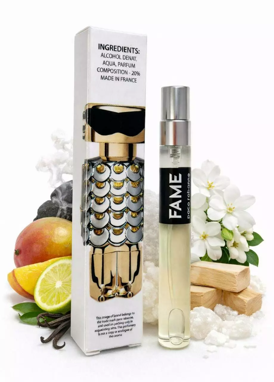 Це сучасний, яскравий аромат для жінок із теплими фруктово‑квітковими тонами. Він відкривається соковитим і тропічним поєднанням манго і бергамоту, що дарує відчуття енергії та свіжості. У серці композиції звучать ніжні квіткові акорди жасмину, доповнені інтенсивним ароматом ладану, який додає теплоти й загадковості. Базові ноти ванілі та сандалового дерева створюють теплий, м’який і солодкуватий шлейф, що дуже приємно розкривається на шкірі. Fame звучить чуттєво і жіночно, з відчуттям комфорту та елегантності. Його композиція одночасно фруктова та трохи пряна, що робить аромат універсальним для різних ситуацій. Це чудовий вибір для денного та вечірнього використання, коли хочеться підкреслити свою індивідуальність. Fame від Paco Rabanne має помірну стійкість і досить виразний шлейф. Його аромат впізнаваний і приємний, чудово підходить для теплих сезонів та святкового настрою. Якщо ти любиш солодкі, фруктові й трохи екзотичні аромати з деревно‑ванільним фінішем, Fame може стати твоїм новим улюбленцем.