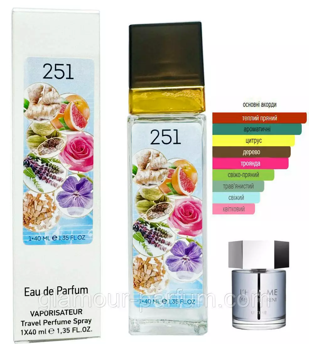 Хочете купити Парфум № 251 за мотивами Yves Saint Laurent L’Homme Ultime (Ів Сен Лоран Ель Хоум Ультім) 40 мл ОПТ ? Зробіть замовлення в нашому інтернет – магазині Гламур Парфум «»: через корзину або по телефону. Розібратися в особливостях тієї чи іншої парфумерії, а також косметики, із задоволенням допоможуть доброзичливі .