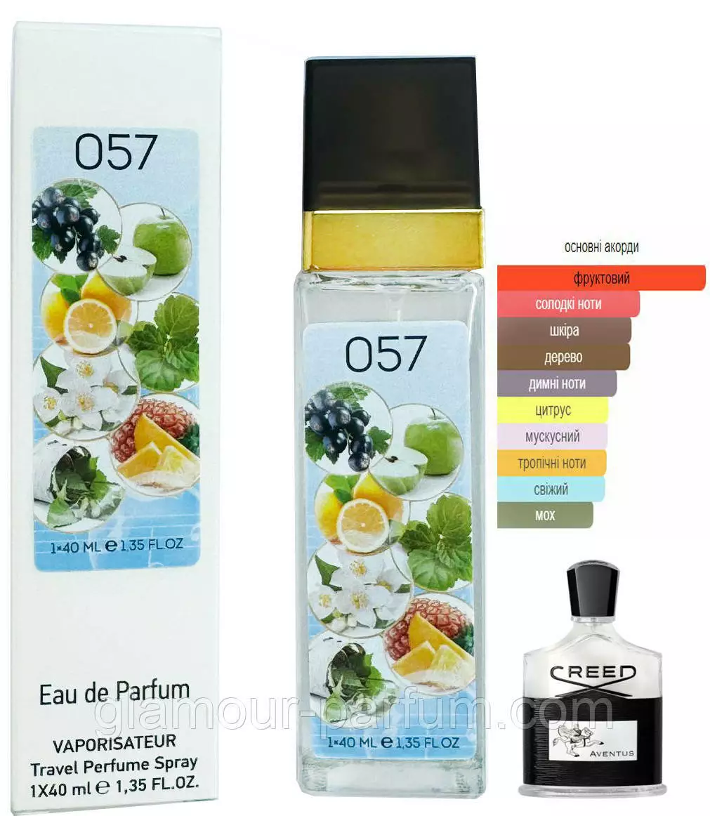 Хочете купити Парфум № 57 за мотивами Creed Aventus (Крід Авентус) 40 мл ОПТ ? Зробіть замовлення в нашому інтернет – магазині Гламур Парфум «»: через корзину або по телефону. Розібратися в особливостях тієї чи іншої парфумерії, а також косметики, із задоволенням допоможуть доброзичливі .