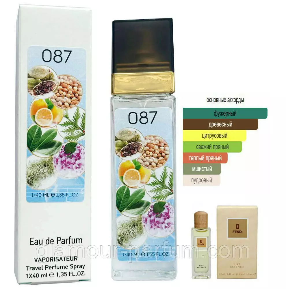 Парфум № 87 за мотивами Fendi Life Essence (Фенді Лайф Ессенс) – це захоплююча і наповнена сенсом симфонія, яка звучить на океанічному узбережжі. Їй акомпанують тихі хвилі, жарко-солоний бриз, а також лунають акорди захоплюючою і хвилююче-терпкою, перебивающей дихання деревини і прянощів. Саме так можна охарактеризувати цей чудовий істинно східно-пряний, глибокий і багатогранний парфум.