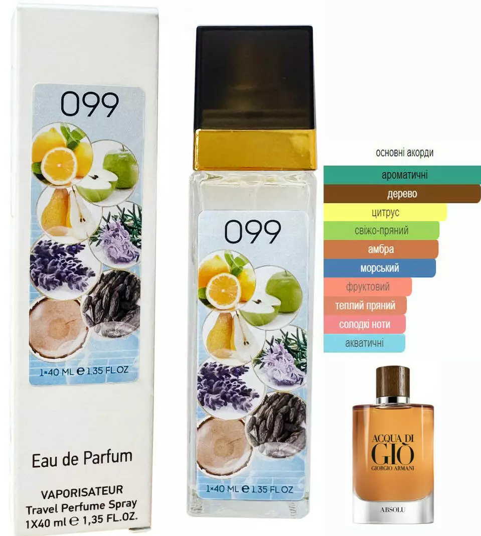 Чоловічий парфум № 099 за мотивами Armani Acqua Di Gio Men Absolu (Армані Аква ді Джіо Абсолю) 40 мл. ОПТ