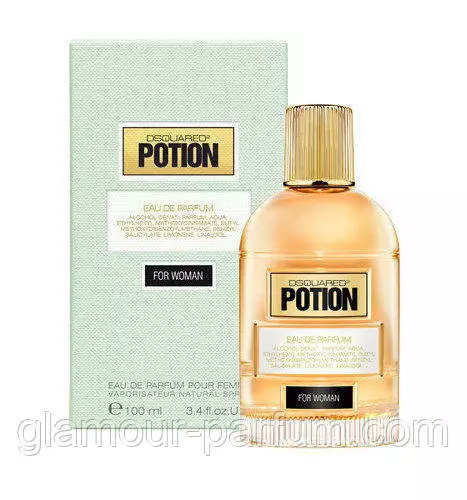 Екзотичний букет жіночності, унікальний ароматний коктейль, який здатний розбурхати та зачаровувати, ставати невидимим для ока витонченим вечірнім аксесуаром — це Dsquared2 Potion for Women (Дискваред Потион фо Вумен), випущений 2012 року. Інтенсивний і яскравий парфумерний букет побудований на неповторних і насичених ароматних поєднаннях, які відповідають давнім алхімічним рецептам парфумів. Так, Dsquared2 Potion стає нащадком найдавніших ароматів, використаних для спокушання найбільших людей своїх епох. Тому композиція поєднує в собі чуттєвість і силу, ніжність і пікантність, неординарність і витонченість. Він розроблений для жінок, які вирізняються силою, незалежністю та свободою. Це успішні та бажані красуні, які випромінюють потужну сексуальну енергетику, підкреслену чарівними нотами квітково-шипрового букета. Домінує місце в композиції, тому займають спеції, розкішні квіти та чуттєва відверта база, яка ідеально довершує букет. Аромат створений для холодних вечорів в осінню, а краще зимову пору.