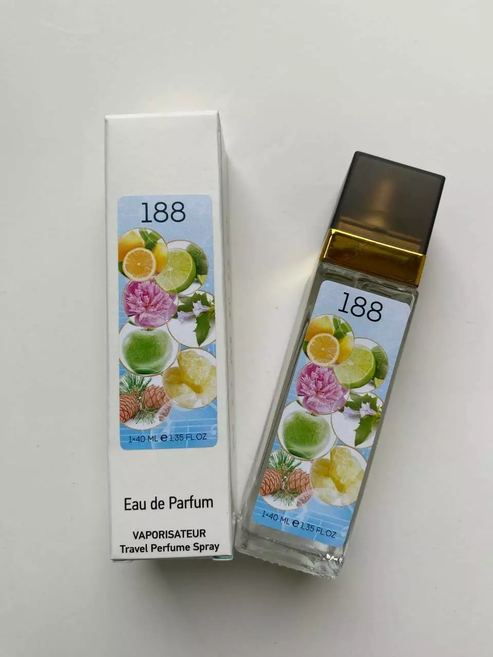 При першому торканні шкіри аромат розкривається яскравим дуетом цитрусових — підбадьорливого лайма і тонізуючий лимона. У серце парфумерної композиції звучить розкішний акорд хвилюючого дурману, пишного півонії, апетитного праліне і свіжого хрусткого яблука. Шлейф туалетної води представлений чудовим тріо елегантного білого кедра, спокусливого мускусу і делікатною ноти яблуні. Стильний впізнаваний флакон стане справжньою прикрасою вашого туалетного столика, а чарівний парфум № 188 за мотивами Nina Ricci Nina Pop — ефектним ароматним акцентом у вашому стилі.